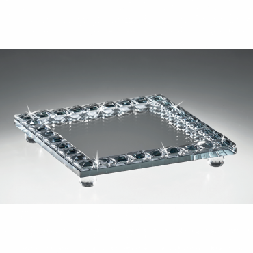 Ranoldi vassoio centrotavola quadrato a specchio con piedini in cristallo. Ottima idea regalo per casa nuova, per Matrimonio o Anniversario di Nozze.