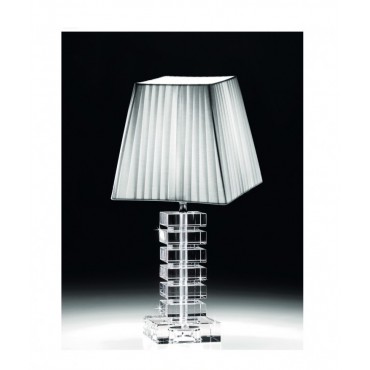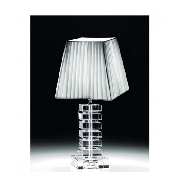 Ranoldi lampada in cristallo con paralume in stoffa bianca. Ottima idea regalo per casa nuova, per Matrimonio o Anniversario di Nozze.