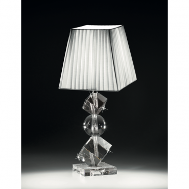 Ranoldi lampada in cristallo con paralume in stoffa bianca. Ottima idea regalo per casa nuova, per Matrimonio o Anniversario di Nozze.