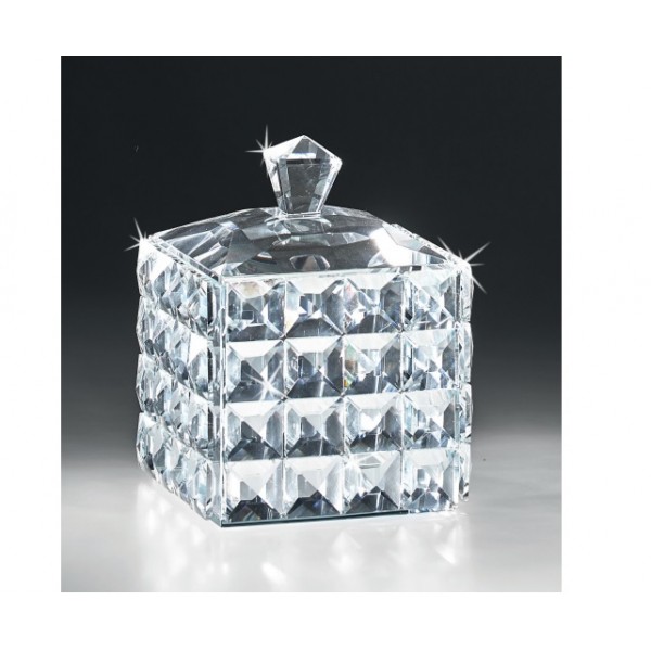 Ranoldi scatola portagioie in cristallo con coperchio, misure 13 X 13 X 17 CM.