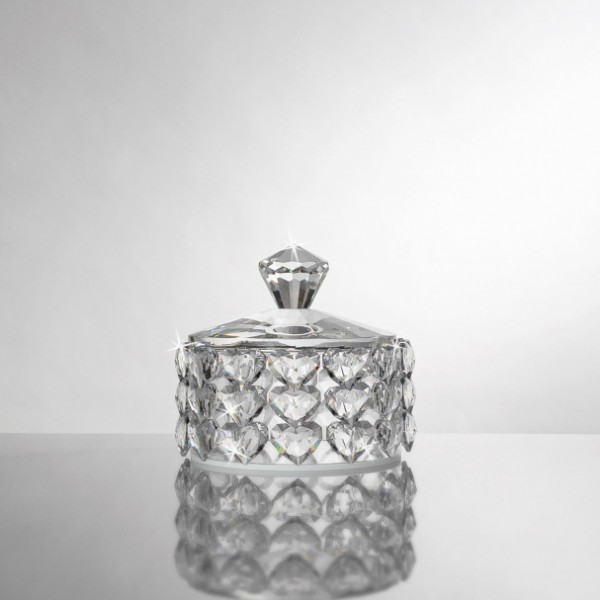 Ranoldi scatola portagioie con cuori intorno in cristallo con coperchio, misure 12 x 12 x 13 cm.