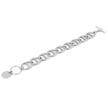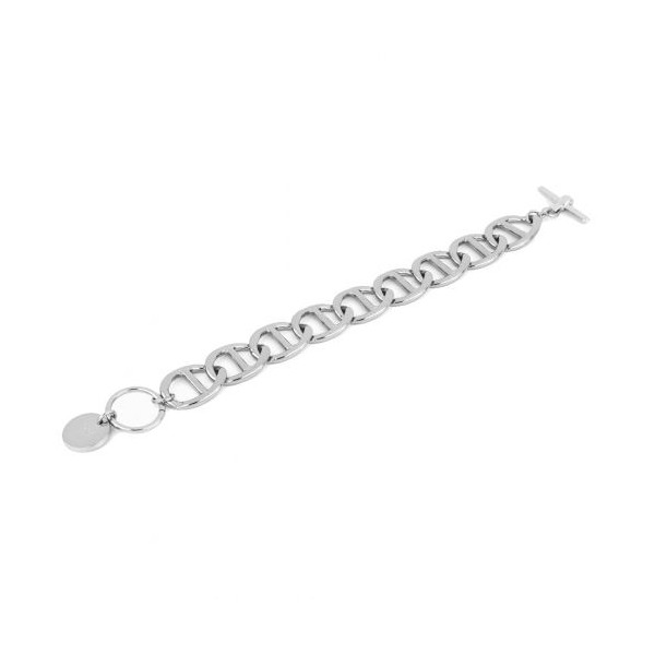 UnoAerre bracciale da donna con catena piatta in bronzo bianco argentato. Lunghezza 20 cm. Chiusura regolabile con t-bar.