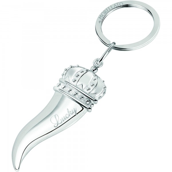 Morellato portachiavi da donna in acciaio a forma di corno, simbolo portafortuna da donna con inciso "Lucky".