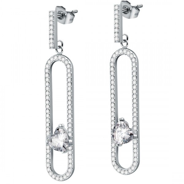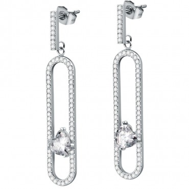 Morellato orecchini donna in acciaio pendenti con cristalli e uno al centro a forma di cuore. Chiusura con farfallina