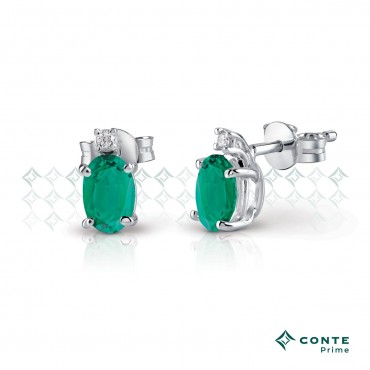 Gli orecchini certificati Conte Diamonds sono in oro bianco rodiato 18 KT con smeraldo 0.36 kt totali e diamanti taglio brillante di carati 0,02 totali di colore F ( bianco eccezionale) purezza SI.