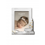 Valenti & Co. cornice portafoto in lamina d'argento e retro in legno bianco con il simbolo del Battesimo, fonte battesimale e candele in argento lucido e dorato. Perfetta come idea regalo per il giorno del Battesimo come ricordo per tutta la vita.