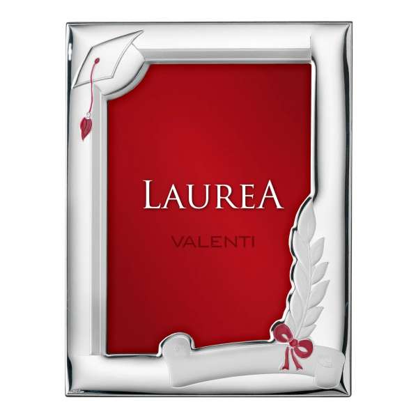 Valenti & Co. cornice portafoto in lamina d'argento in legno scuro con il simbolo della Laurea, il cappello da laureando, il tocco e la pergamena. Perfetta come idea regalo per il giorno della Laurea come ricordo per tutta la vita.