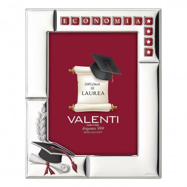 Valenti & Co. cornice portafoto in lamina d'argento in legno scuro con il tocco, simbolo della Laurea. Perfetta come idea regalo per il giorno della Laurea come ricordo per tutta la vita. In alto a destra è possibile personalizzare la cornice incollando le lettere adesive, presenti nella confezione, e scrivere l'indirizzo di Laurea del laureando.