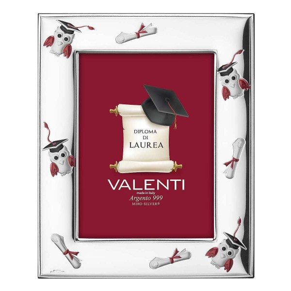 Valenti & Co. cornice portafoto in lamina d'argento in legno scuro con i gufettI, simbolo della Laurea, rappresentano la saggezza. Perfetta come idea regalo per il giorno della Laurea come ricordo per tutta la vita.