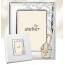 Atelier cornice portafoto in lamina d'argento e retro in legno raffigurante il simbolo della Cresima con albero della vita in argento satinato. Perfetta da regalare per il giorno che si riceve la Cresima, resterà per sempre un ricordo.