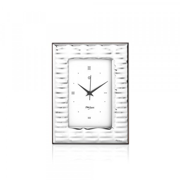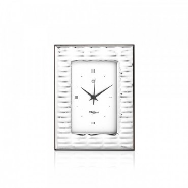 Ottaviani orologio da tavolo con argento e retro in legno, interno 7,5 cm x 11.4 cm, esterno 14,4 cm x 17,4 cm