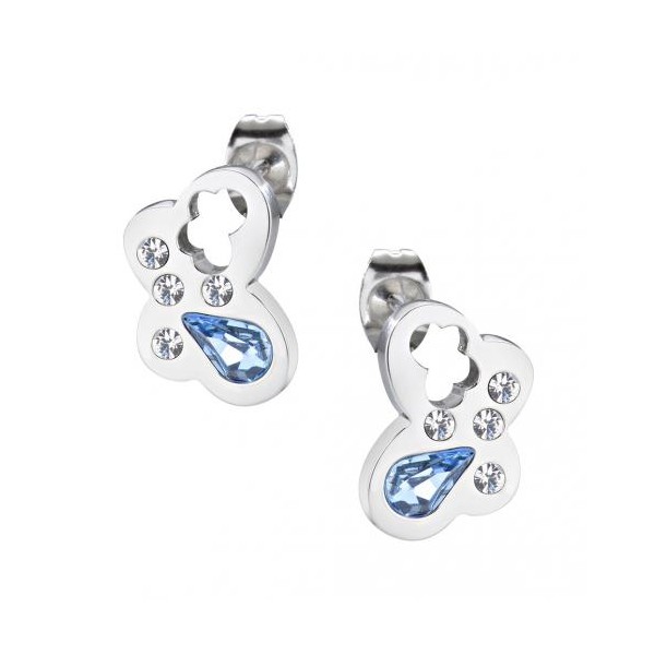 Orecchini firmati Morellato fanno parte della collezione Allegra in acciaio da donna, con una farfalla piena con all'interno cristalli blu. Chiusura con farfallina in acciaio anallergico e inossidabile.