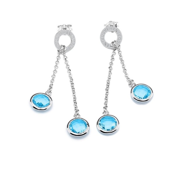 Iacopini orecchini da donna pendenti a doppio filo in argento 925% con pietre di colore celeste. Chiusura in argento con farfallina.