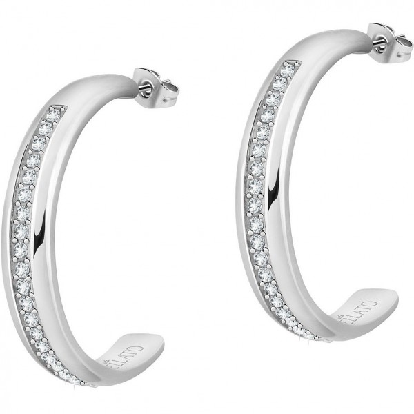 Morellato orecchini donna in acciaio a cerchio con zirconi centrali.