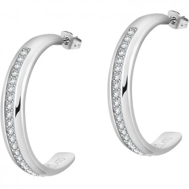 Morellato orecchini donna a cerchio della collezione Cerchi in acciaio con zirconi centrali. Chiusura con farfallina.