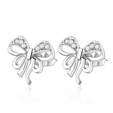 S'Agapo orecchini da donna della linea Gift in acciaio 316L inossidabile e anallergico a forma di fiocco ricchi di cristalli bianchi. Chiusura con farfallina.