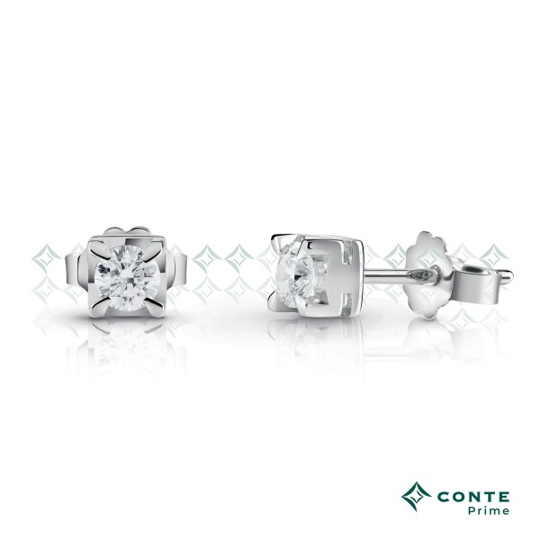Conte Diamonds orecchini punto luce con diamanti totali da 0,28 carati colore F ( Bianco extra + ) e montatura a giorno in oro bianco 18 kt. Chiusura con farfallina in oro 750%.