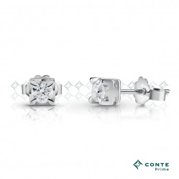 Gli orecchini punto luce certificati Conte Diamonds sono in oro bianco rodiato 18 KT con diamanti taglio brillante di carati 0,28 totali, colore F ( bianco eccezionale) purezza SI, incastonato in una montatura "a griffe" in oro bianco 750%.