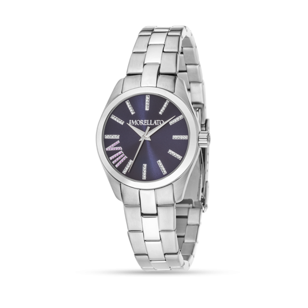 Morellato orologio da donna, movimento al quarzo, funzione solo tempo, misura cassa 31.5 x 38 mm in acciaio, quadrante di colore blu, vetro minerale, bracciale in acciaio colore argento, resistente all'acqua fino a 5 atm