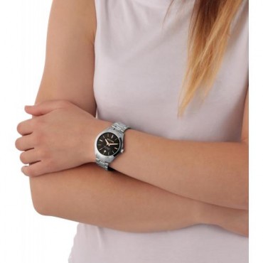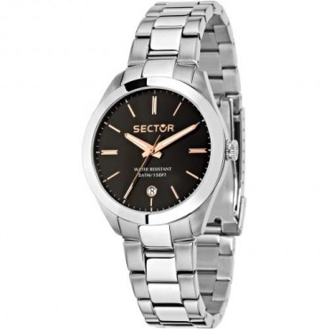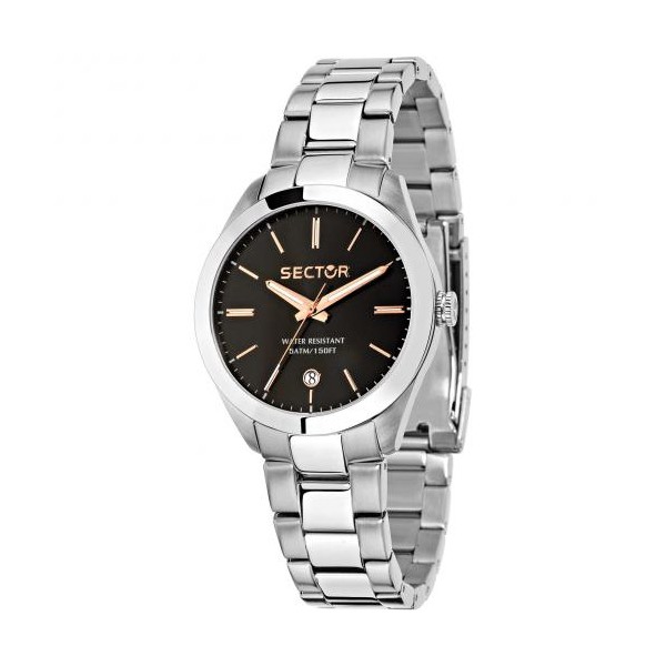 Sector orologio da donna just time della Collezione 120 con cassa in acciaio quadrante nero, le lancette e gli indici di colore oro rosa. Con datario. Movimento al quarzo. Il bracciale dell'orologio è in metallo. Resistente all'acqua fino a 5 atm.