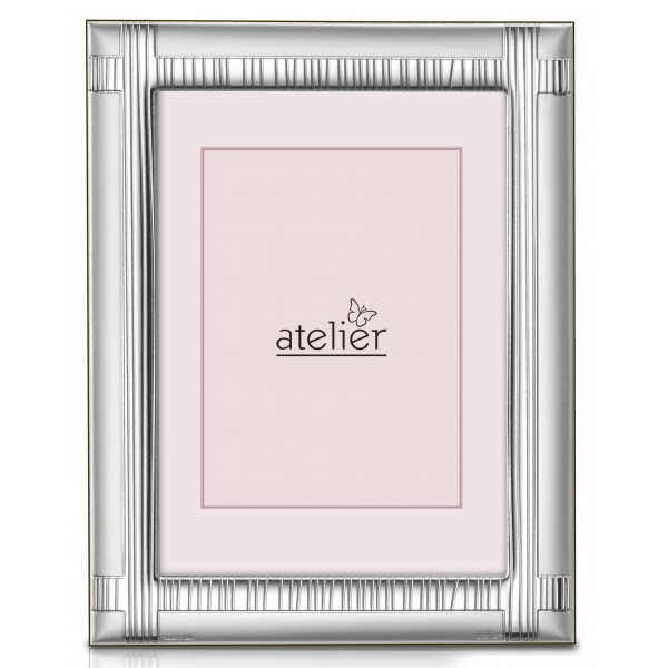 Atelier cornice portafoto in lamina d'argento lucido e satinato e retro in legno scuro, modello Velvet. Sul retro la cravatta permette l'orientamento verticale o orizzontale del portafoto. Sopra l'argento vi è una patina protettiva trasparente che lo preserva dallo scurimento nel tempo. Per questo non vanno in alcun modo spruzzati prodotti per l'argento o qualsiasi altro agente chimico, ma all'occorrenza, va utilizzato un panno morbido e asciutto per togliere la polvere. Il portafoto resta invariato nel tempo, pulito e lucente come appena acquistato. E' un ottima idea regalo per qualunque occasione, arreda la casa o l'ufficio con eleganza e stile.