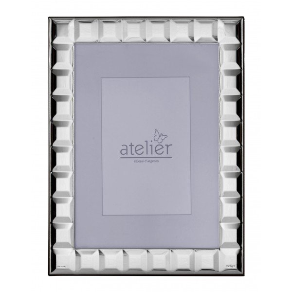 Atelier cornice portafoto in lamina d'argento e retro in legno scuro, modello Chocolat. Sul retro la cravatta permette l'orientamento verticale o orizzontale del portafoto. Sopra l'argento vi è una patina protettiva trasparente che lo preserva dallo scurimento nel tempo. Per questo non vanno in alcun modo spruzzati prodotti per l'argento o qualsiasi altro agente chimico, ma all'occorrenza, va utilizzato un panno morbido e asciutto per togliere la polvere. Il portafoto resta invariato nel tempo, pulito e lucente come appena acquistato. E' un ottima idea regalo per qualunque occasione, arreda la casa o l'ufficio con eleganza e stile.