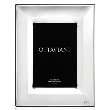Cornice portafoto firmata Ottaviani modello "new york" in argento e retro in legno, adatta su qualunque tipo di arredo. Misura interna per la foto 18 x 24 cm.
