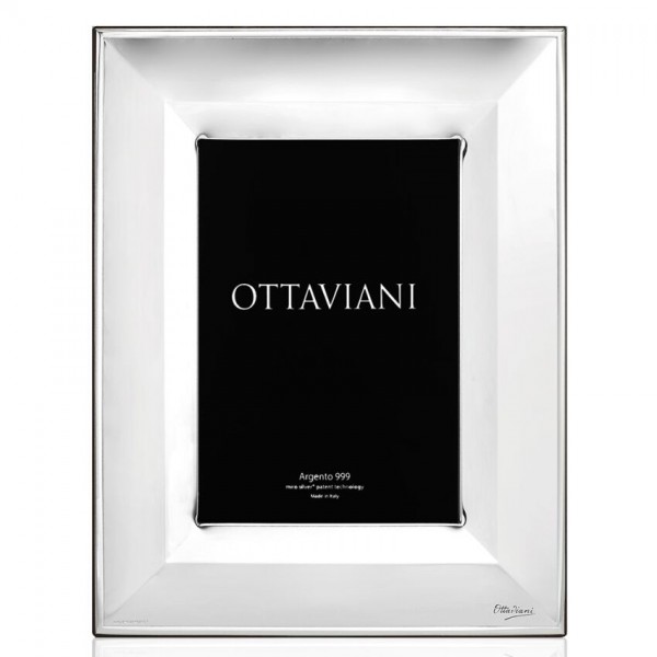 Cornice portafoto firmata Ottaviani modello "new york" in argento e retro in legno, adatta su qualunque tipo di arredo. Misura interna per la foto 13 x 18 cm. Orientamento sia verticale che orizzontale.