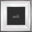 Atelier cornice portafoto liscia e quadrata con righe all'interno in lamina d'argento e retro in legno scuro elegante e raffinata adatta a qualunque tipologia di arredo, modello Praga. Sul retro la cravatta permette l'orientamento verticale o orizzontale del portafoto.