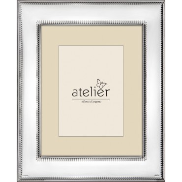 Atelier cornice portafoto liscia con un intarsio sul perimetro esterno ed interno in lamina d'argento e retro in legno scuro elegante e raffinata adatta a qualunque tipologia di arredo, modello Luxury. Sul retro la cravatta permette l'orientamento verticale o orizzontale del portafoto. Sopra l'argento vi è una patina protettiva trasparente che lo preserva dallo scurimento nel tempo. Per questo non vanno in alcun modo spruzzati prodotti per l'argento o qualsiasi altro agente chimico, ma all'occorrenza, va utilizzato un panno morbido e asciutto per togliere la polvere. Il portafoto resta invariato nel tempo, pulito e lucente come appena acquistato. E' un ottima idea regalo per qualunque occasione, arreda la casa o l'ufficio con eleganza e stile.