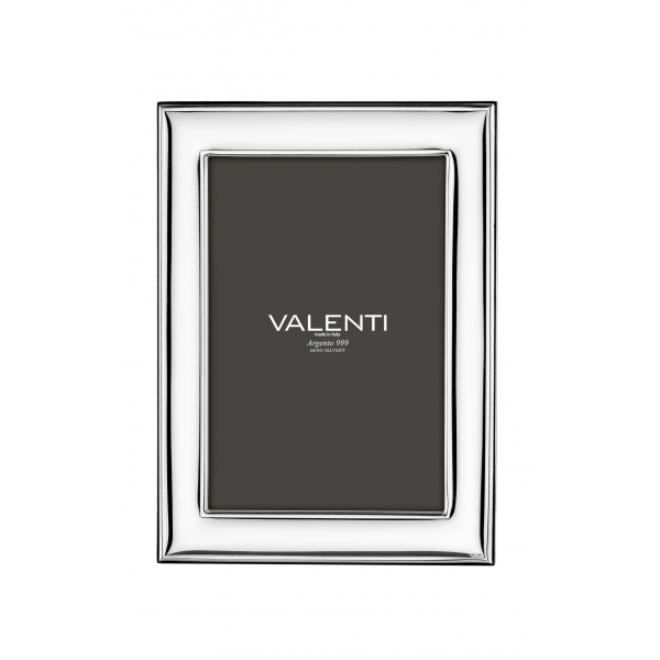 Valenti & Co. cornice portafoto in lamina d'argento e retro in legno scuro elegante e raffinata adatta a qualunque tipologia di arredo. Sul retro la cravatta permette l'orientamento verticale o orizzontale del portafoto.