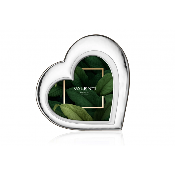 Valenti & Co. cornice portafoto a forma di cuore in lamina d'argento e retro in legno scuro elegante e raffinata adatta a qualunque tipologia di arredo.