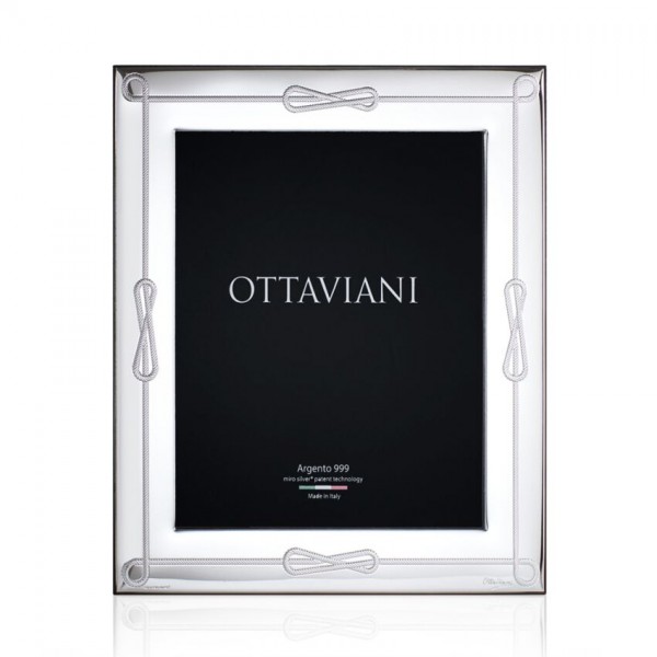 Cornice portafoto firmata Ottaviani modello "marinaro" in argento e retro in legno, adatta su qualunque tipo di arredo. Misura interna per la foto 9 x 13 cm. Orientamento sia verticale che orizzontale. Rappresenta il simbolo dell'infinito, un'amicizia o un amore che non avrà mai fine. Perfetta idea regalo per Matrimonio, Anniversario o da regalare alla coppia per l'inaugurazione di casa nuova.