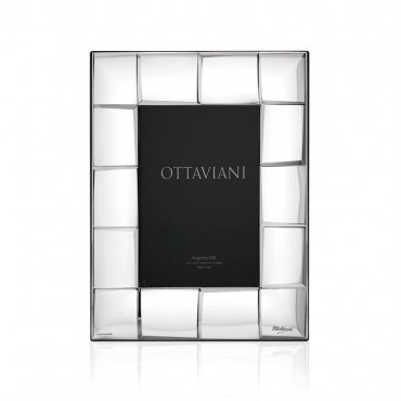 Cornice portafoto firmata Ottaviani modello "square" in argento e retro in legno, fascia larga con fantasia a quadri adatta su qualunque tipo di arredo. Misura interna per la foto 13 x 18 cm.