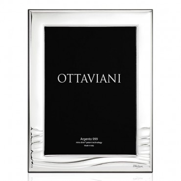 Cornice portafoto firmata Ottaviani modello "mare" in argento e retro in legno, adatta su qualunque tipo di arredo. Misura interna per la foto 9 x 13 cm. Orientamento sia verticale che orizzontale.