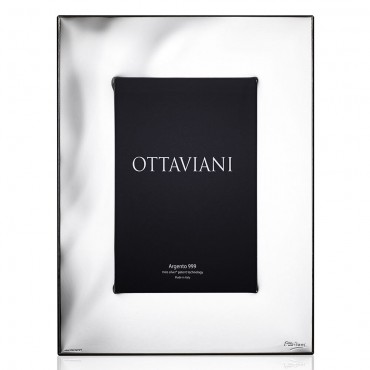 Cornice portafoto firmata Ottaviani modello "charme" in argento e retro in legno, leggermente martellata a fascia larga adatta su qualunque tipo di arredo. Misura interna per la foto 18 x 24 cm.
