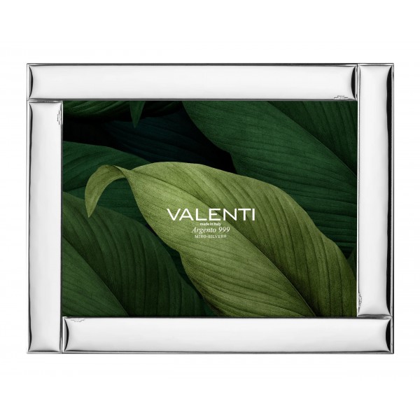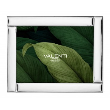 Valenti & Co. cornice portafoto in lamina d'argento e retro in legno scuro elegante e raffinata adatta a qualunque tipologia di arredo. Sul retro la cravatta permette l'orientamento verticale o orizzontale. Può essere appesa e fatta diventare una specchiera con lo specchio in dotazione nella confezione.