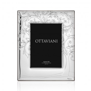 Cornice portafoto firmata Ottaviani modello "ad maiora" in argento e retro in legno con inciso l'albero della vita, fascia larga adatta su qualunque tipo di arredo. Misura interna per la foto 13 x 18 cm. Perfetta idea regalo per Matrimonio, Anniversario, inaugurazione di casa nuova o ufficio.