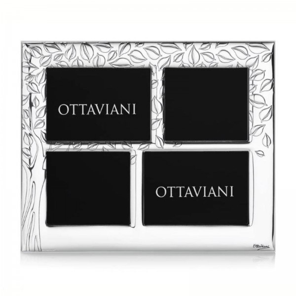 Cornice portafoto firmata Ottaviani modello "albero della vita multiplo" in argento e retro in legno, adatta su qualunque tipo di arredo. E' composta da 4 cornici. Misura della cornice 24 x 30 cm