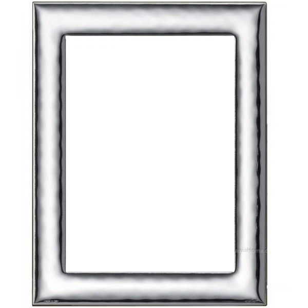 Atelier cornice portafoto in lamina d'argento e retro in legno scuro moderna ed elegante leggermente martellata adatta a qualunque tipologia di arredo, modello Caban. Sul retro la cravatta permette l'orientamento verticale o orizzontale del portafoto.