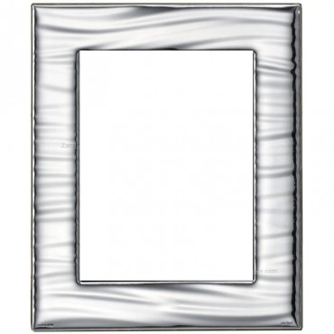 Atelier cornice portafoto martellata in lamina d'argento e retro in legno scuro elegante e raffinata adatta a qualunque tipologia di arredo, modello Georgette. Sul retro la cravatta permette l'orientamento verticale o orizzontale del portafoto.