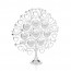 Ottaviani albero della famiglia inteso come albero della vita in metallo argentato su base tonda composta da rami e foglie lavorate da cui pendono portafoto a forma di cuore.