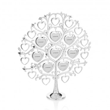 Ottaviani albero della famiglia inteso come albero della vita in metallo argentato su base tonda composta da rami e foglie lavorate da cui pendono portafoto a forma di cuore. Ottima idea regalo per Matrimonio, Anniversari, compleanno, oppure può essere regalato per l'inaugurazione di casa nuova. Simboleggia l'unione, la famiglia e la sua continua crescita.