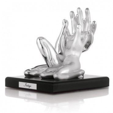 Ottaviani scultura Intrigo con argento su base in legno nero, base 15 cm x 12 cm, altezza 14 cm. Originale e d'effetto simboleggia l'amore, l'unione e la complicità, dove uno non può esistere senza l'altra.