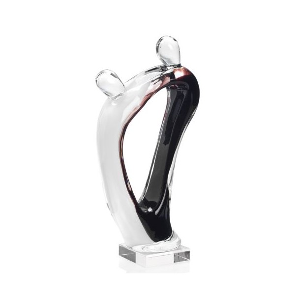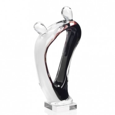 Scultura firmata Ottaviani "io e te" in vetro di murano che rappresenta due corpi che si abbracciano, lei di colore bianco più bassa, lui di colore nero, alto 30 cm.