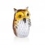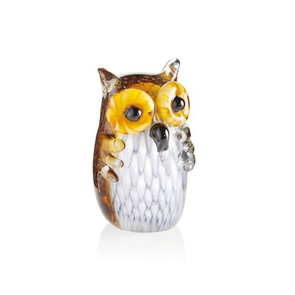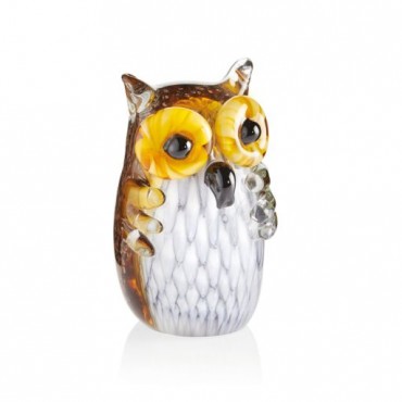 Scultura firmata Ottaviani a forma di gufo spia in vetro di murano con sfumature bianco, giallo e marrone, alto 11 cm